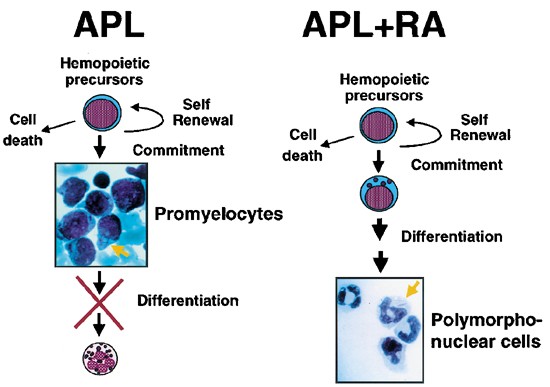 Leukemia presenting as a severe bleeding disorder, with infiltration of the bone marrow by abnormal promyelocytes and myelocytes, a low plasma fibrinogen, and defective coagulation. This mutated gene causes many of the features of the disease. Apl in italy has an annual incidence rate (frequency of occurrence of disease) of around 0.6 per 1 million populations. Acute promyelocytic leukemia (apl) is treated differently than other forms of acute myeloid leukemia. Acute promyelocytic leukemia (apl) is a distinct subtype of acute myeloid leukemia.